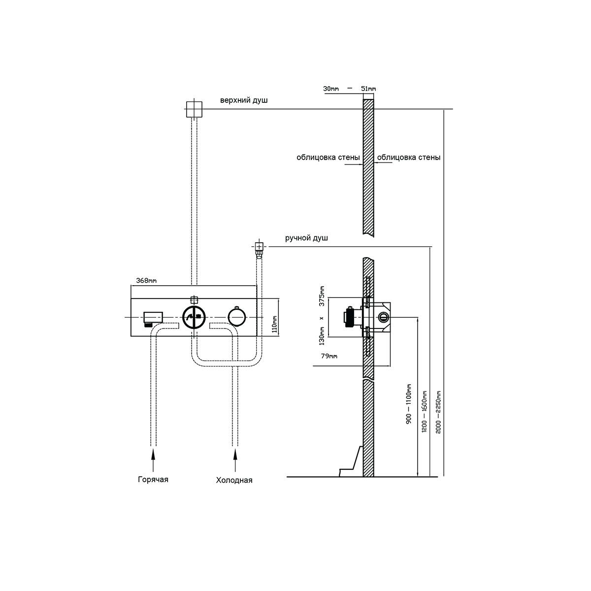 Душевой комплект Vincea VSFW-422TI3CH встраиваемый, термостатический, двухрежимный, хром купить