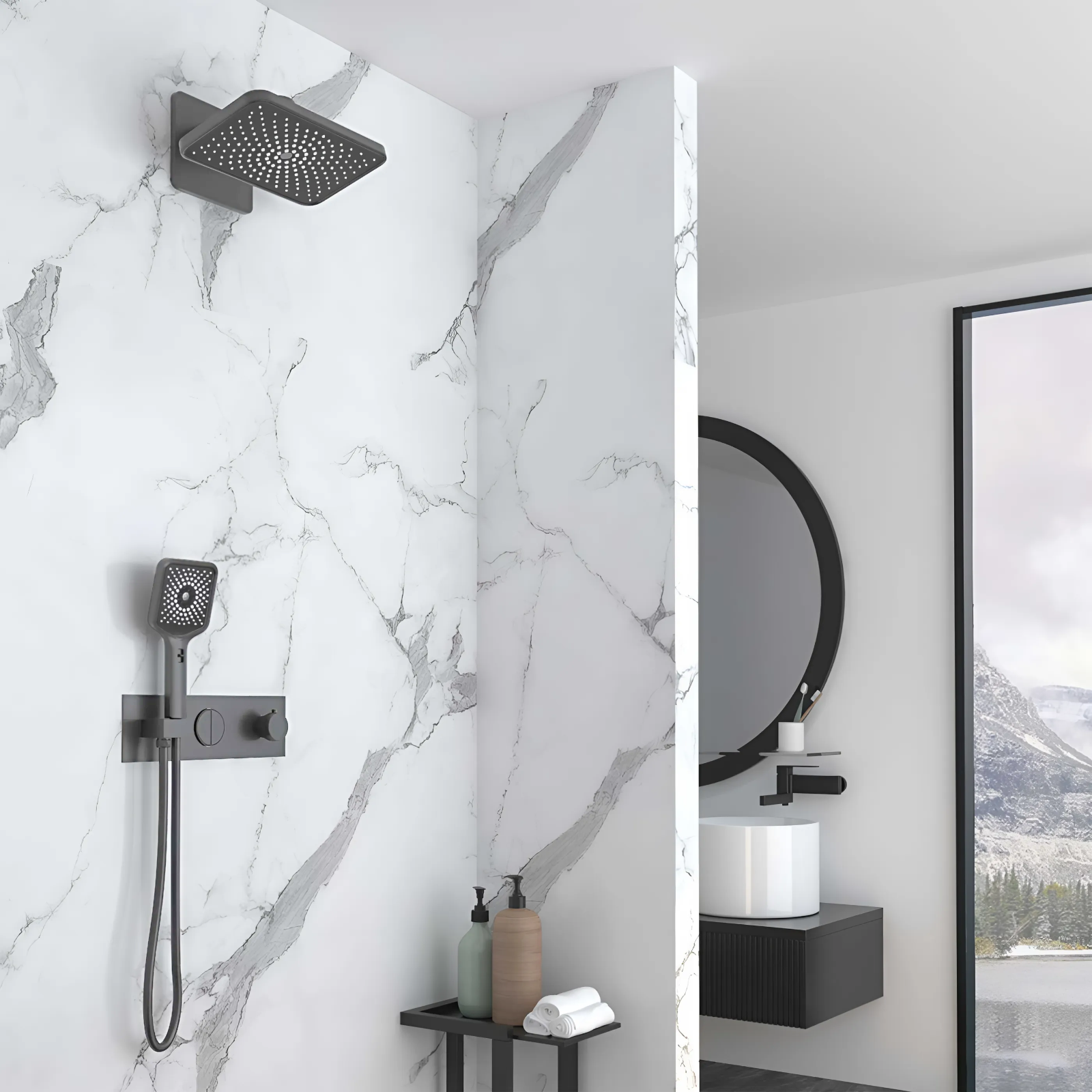 Душевой комплект Vincea VSFW-422TI4GM встраиваемый, термостатический, двухрежимный, вороненая сталь купить