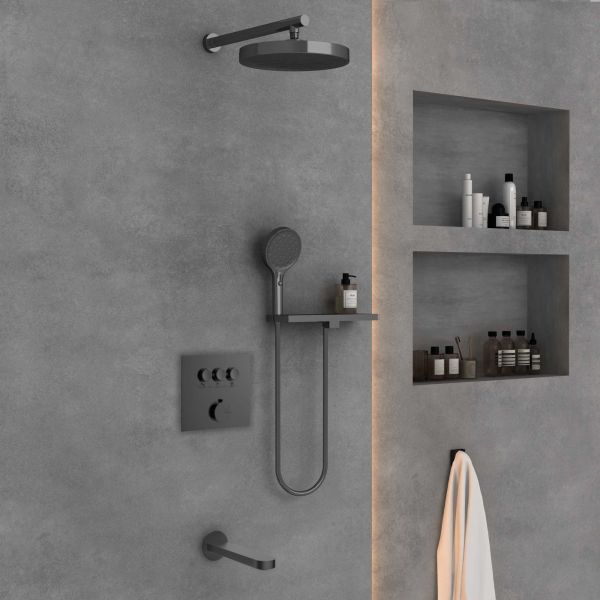 Душевой комплект Vincea VSFW-431I2RGM встраиваемый, трехрежимный, вороненая сталь