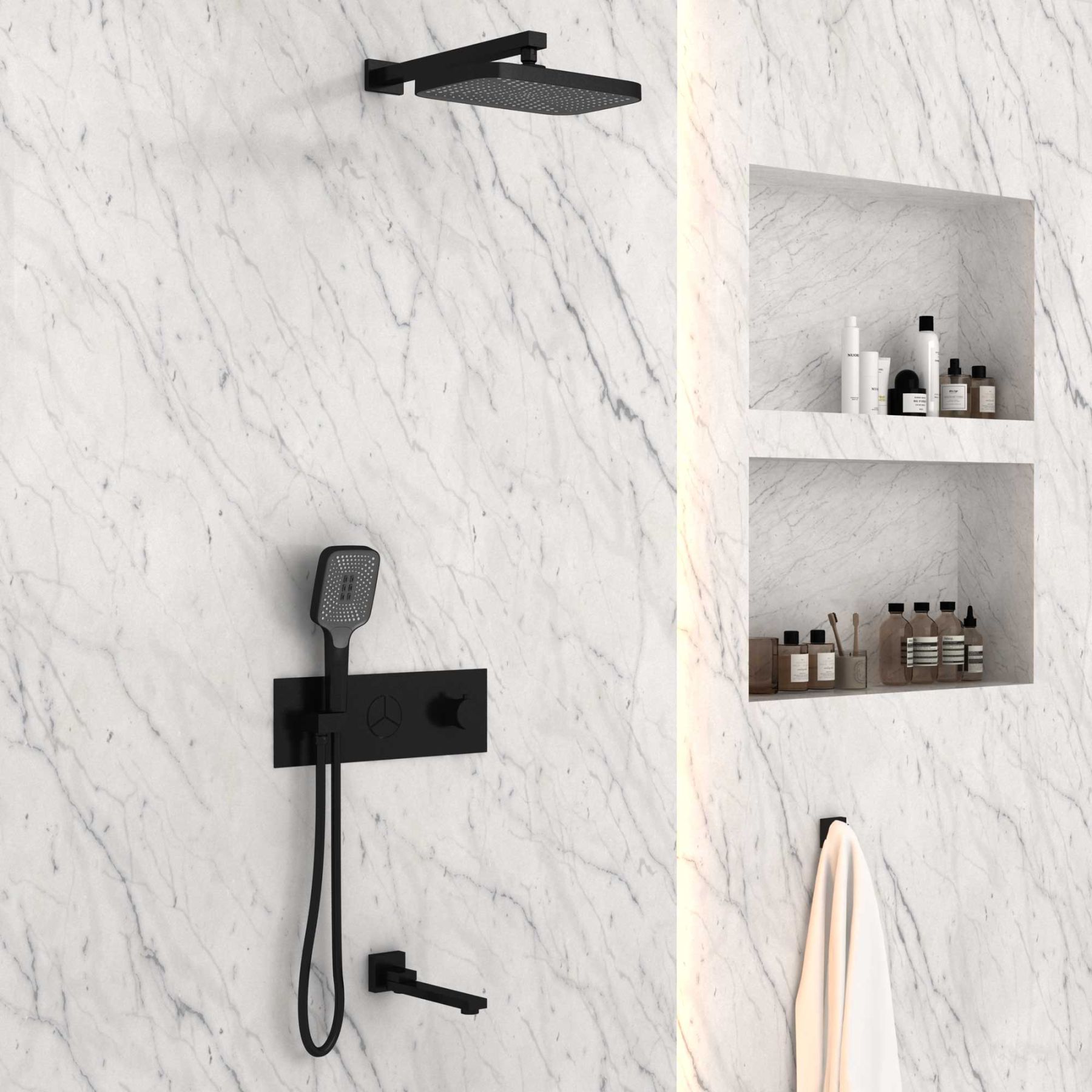Душевой комплект Vincea VSFW-432T1MB встраиваемый, трехрежимный, термостатический, черный купить