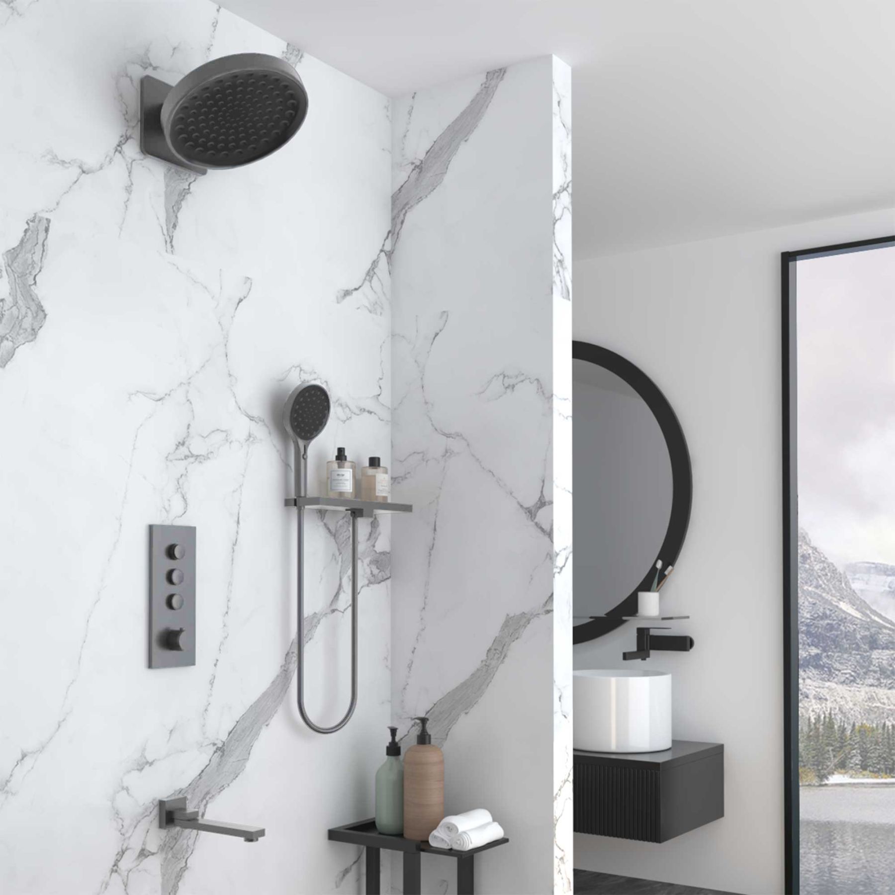 Душевой комплект Vincea VSFW-433TI3RGM встраиваемый, термостатический, трехрежимный, вороненая сталь купить