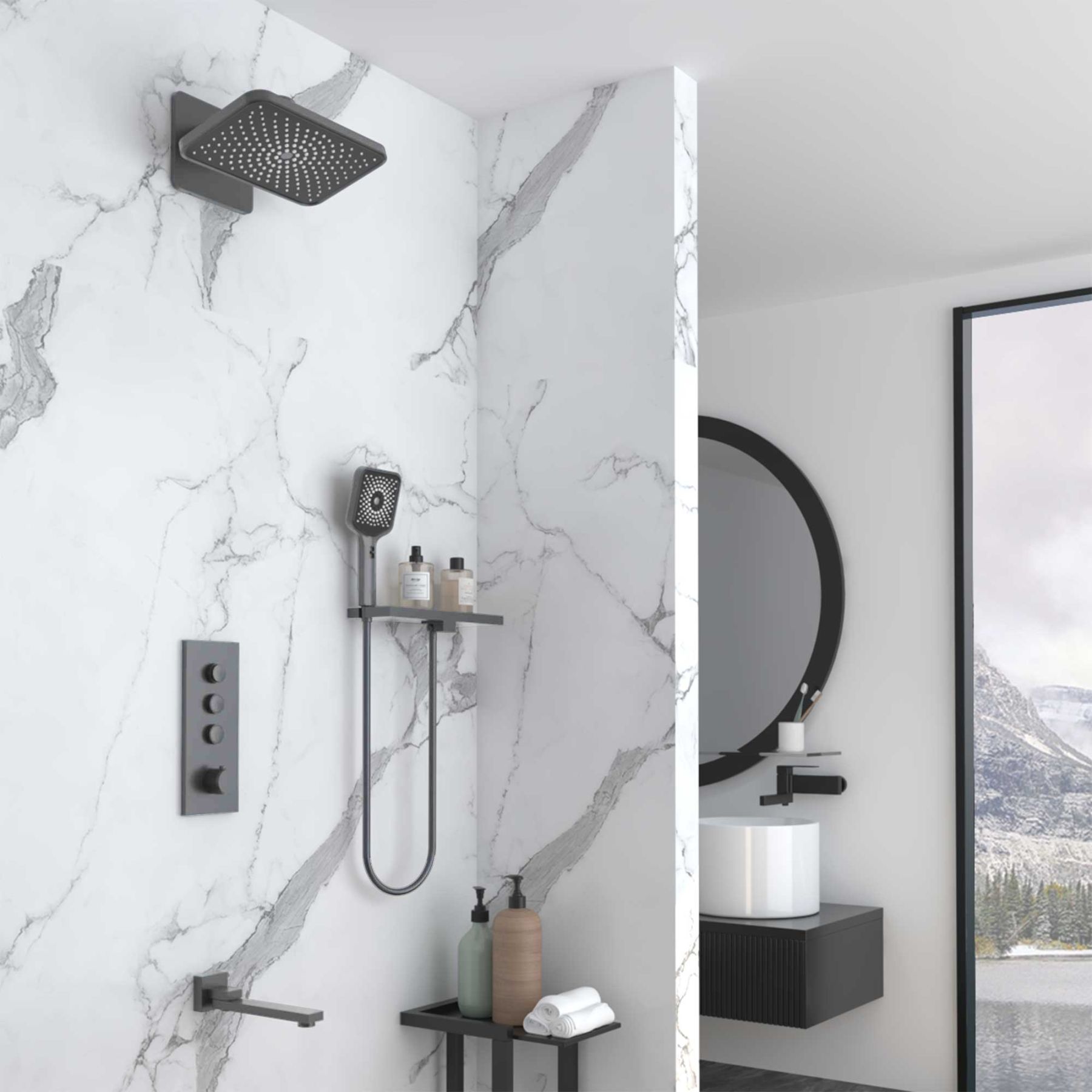 Душевой комплект Vincea VSFW-433TI4RGM встраиваемый, термостатический, трехрежимный, вороненая сталь купить