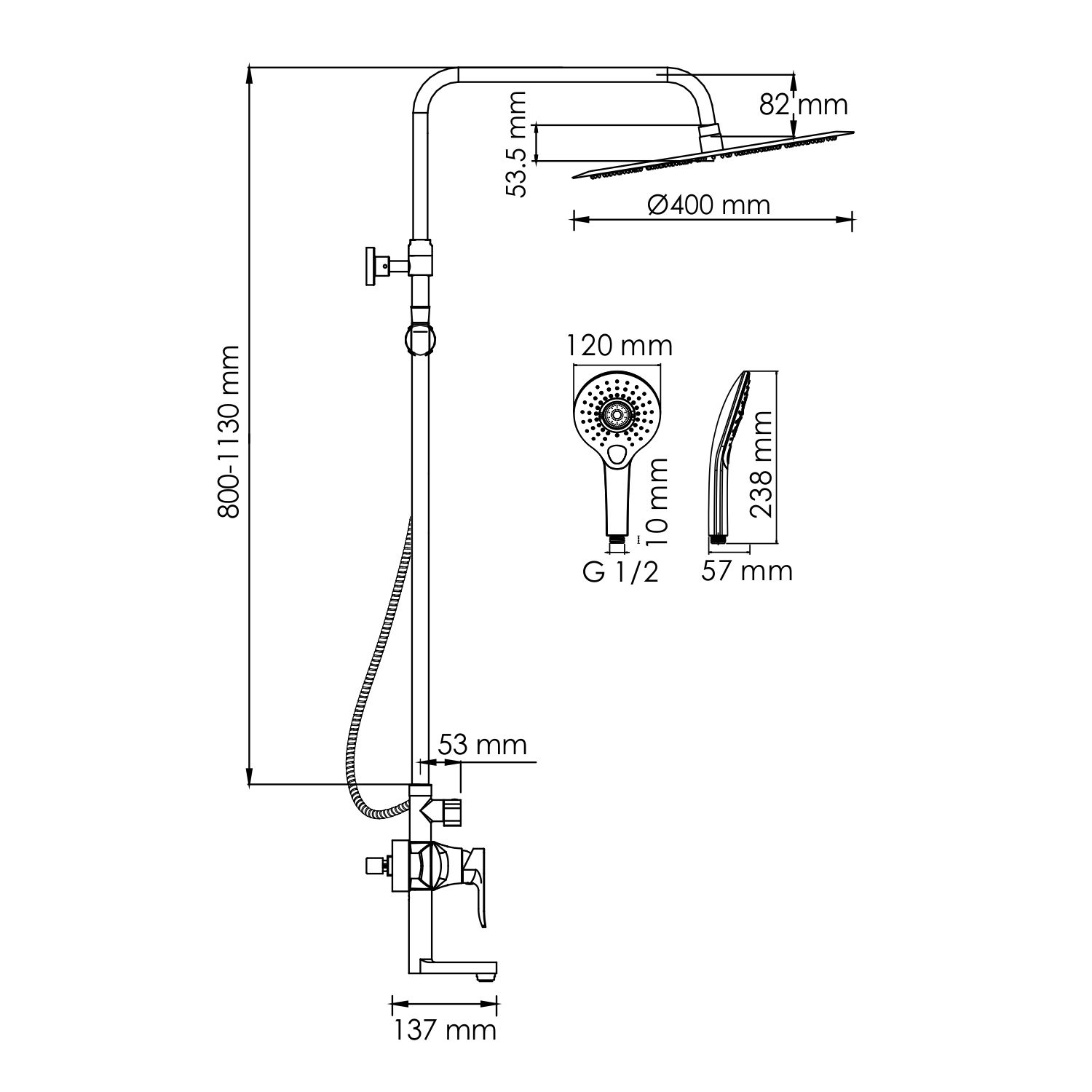 • Размер верхнего душа, см: