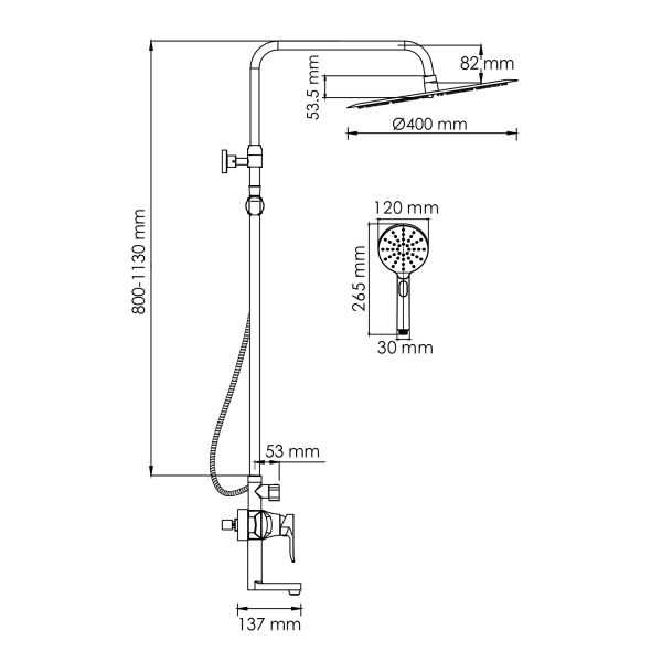 Размер верхнего душа, см:40