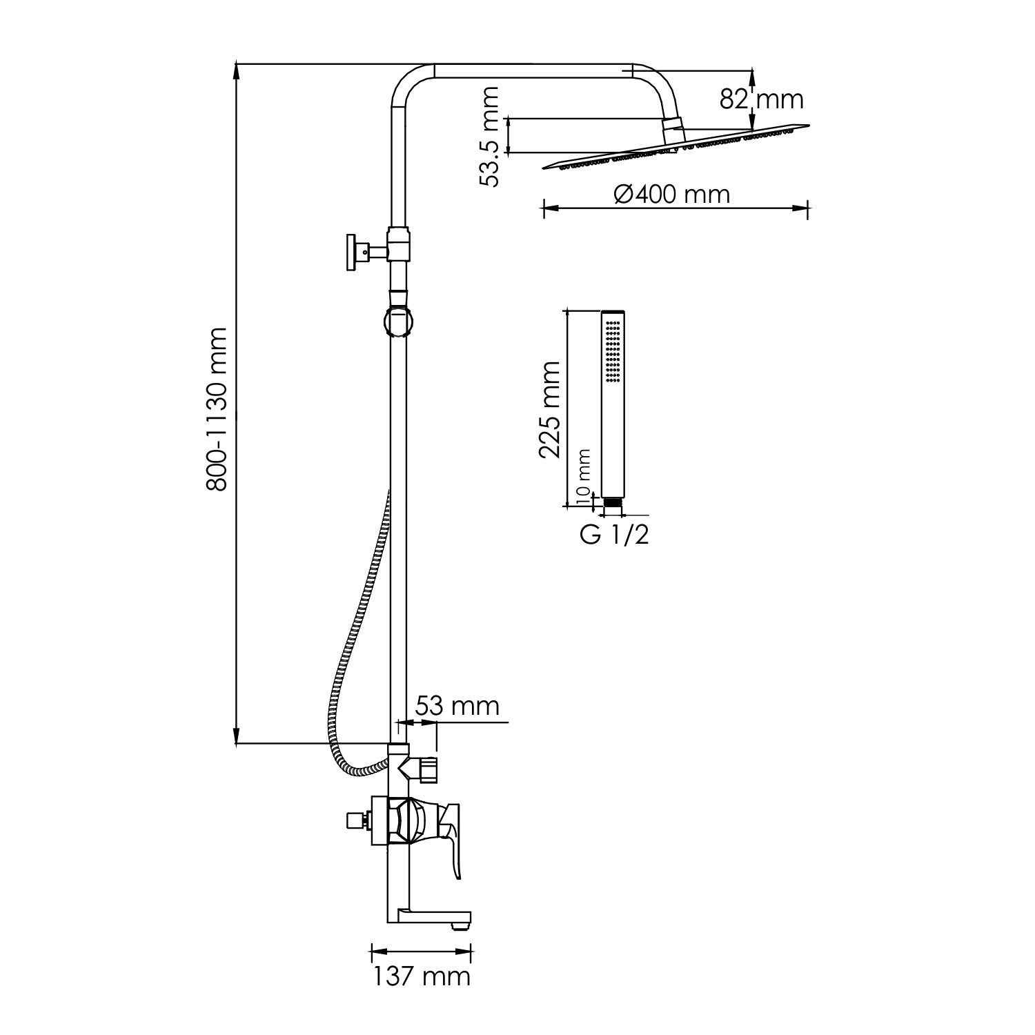 • Размер верхнего душа, см: