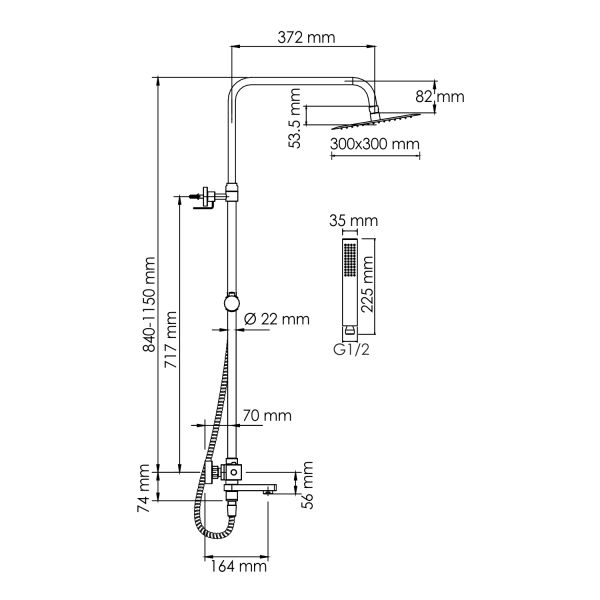 Стойка для душа, Ø 22 мм регулируемая по высоте
