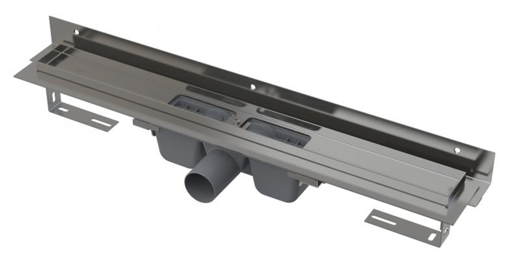 Область применения: используется в душевых для водоотведения на уровне пола, для монтажа непосредственно к стене. Предназначен для перфорированной решетки из нержавеющей стали. Характеристики:- водоотводящий желоб из нержавеющей стали (обработанной методом травления и пассивации, а также прошедшей электрохимическую полировку), регулируемый по высоте;