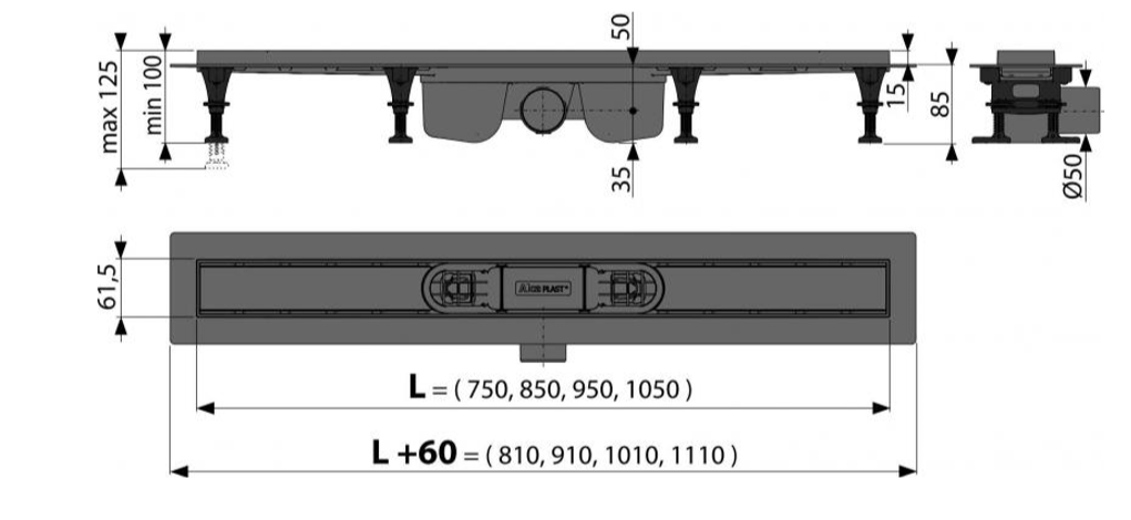 - Регулируемые монтажные ножки 0 – 27 мм, позволяют быстро и удобно установить желоб и выровнять его в горизонтальной плоскости