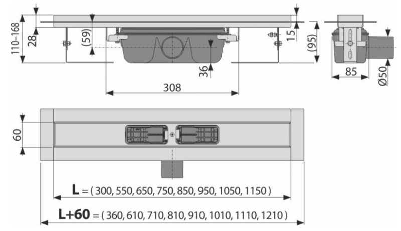 Сточная труба: 50 mm.