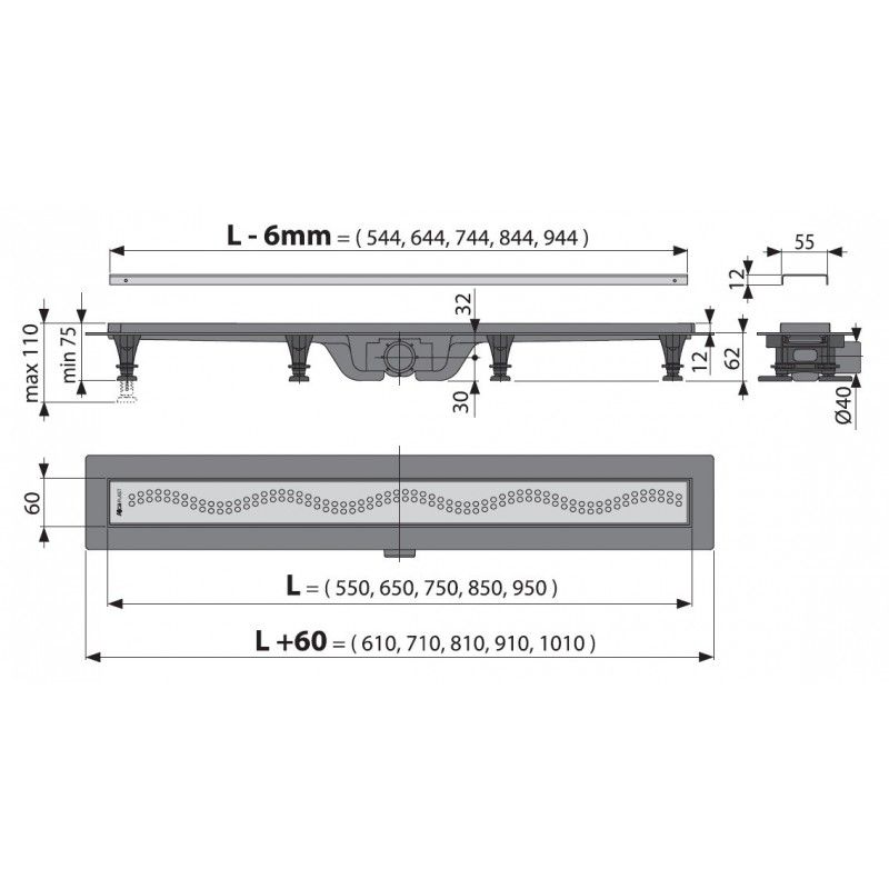 Душевой лоток AlcaPlast Simple с решеткой и опорами APZ8-850M
