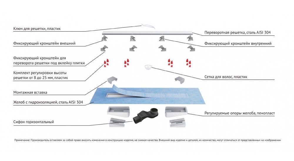 Душевой желоб Berges C1 Norma это современное функциональное решение для оборудования водоотвода во внутренних помещениях. Выполнен из высококачественной нержавеющей стали AISI 304, что обеспечивает жесткую фиксацию в основании пола и длительное использование.Изоляционная мембрана, интегрированная в стальной корпус, гарантирует непроницаемость и совместима со всеми изоляционными материалами.Усовершенствованная система настройки высоты изделия позволяет выполнить легкую регулировку под заданную толщину покрытия, с минимальной высотой монтажа (заливки) - 65мм. Поворотный сифон с гидрозатвором имеет высокую пропускную способность 48 л/мин и оригинальную самопромывную конструкцию.Съемная сетка для волос (грязеуловитель) предотвращает попадание мусора в сифон и позволяет легко проводить очистку желоба. Благодаря возможности переворота решетки и вклейки плитки, вы ощутите цельность пространства в вашей ванной комнате и душевой.