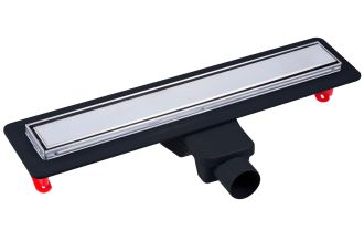 Корпус выполнен из особо прочного пластика, выдерживает нагрузку до 300 кг, устойчив к внешним химическим воздействиям, рабочая температура от -30°С до +75°С.Поворотная решетка шириной 48 мм, из нержавеющей стали AISI 304 толщиной 1 мм. Возможно использовать в двух вариантах: металл или плитка.Удобный и легкий монтаж за счет вращающегося на 360° сифона и регулируемых по высоте ножек. Минимальная монтажная высота 59 мм. Сифон с боковым выпуском D50, S-образной самопромывной конструкцией, высокой пропускной способностью 48 л/мин. Комбинированный затвор защитит от запаха из канализации.Простой уход за счет наличия сетки для волос и легкого доступа к сифону.Комплектация:• Корпус желоба из пластика• Двухсторонняя решетка из нержавеющей стали AISI 304• Комбинированный затвор• S-образный самопромывной сифон• Горизонтальный выпуск D50 H60, пропускная способность 48 л/мин, монтаж 360°• Регулируемые по высоте ножки• Самоклеящаяся гидроизоляционная мембрана• Сетка для волос• Ключ для решетки