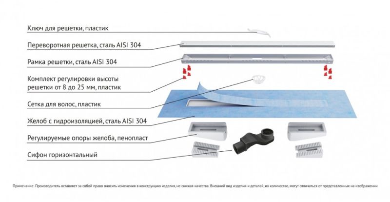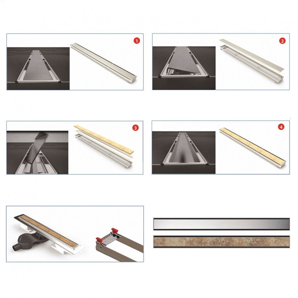 Душевой желоб Berges В1 Keramik это современное функциональное решение для оборудования водоотвода во внутренних помещениях. Выполнен из высококачественной нержавеющей стали AISI 304, что обеспечивает жесткую фиксацию в основании пола и длительное использование.Изоляционная мембрана, интегрированная в стальной корпус, гарантирует непроницаемость и совместима со всеми изоляционными материалами.Усовершенствованная система настройки высоты изделия позволяет выполнить легкую регулировку под заданную толщину покрытия, с минимальной высотой монтажа (заливки) - 65мм. Поворотный сифон с гидрозатвором имеет высокую пропускную способность 48 л/мин и оригинальную самопромывную конструкцию.Наличие съемной стальной рамки обеспечивает эстетичный внешний вид с минимальными зазорами, возможность легкого переворота решетки, а также отсутствие влаги в местах примыкания.Съемная сетка для волос (грязеуловитель) предотвращает попадание мусора в сифон и позволяет легко проводить очистку желоба. Благодаря возможности переворота решетки и вклейки плитки, вы ощутите цельность пространства в вашей ванной комнате и душевой.