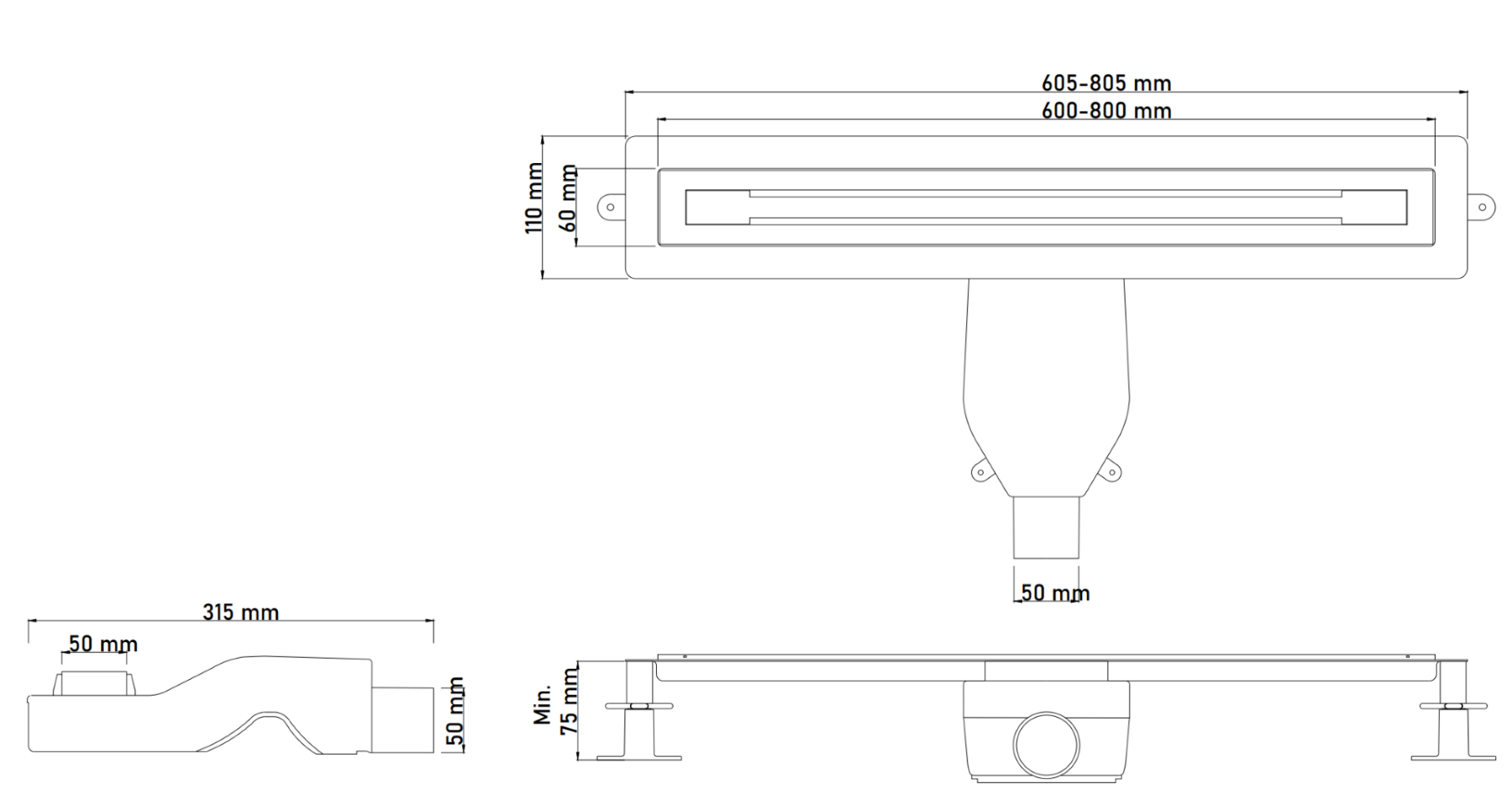 Дренажный канал Boheme Premium Trendy, 60 см, Материал: нержавеющая сталь. Габариты (ШхВхД): ... Подробнее