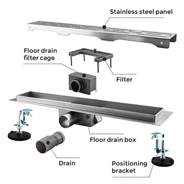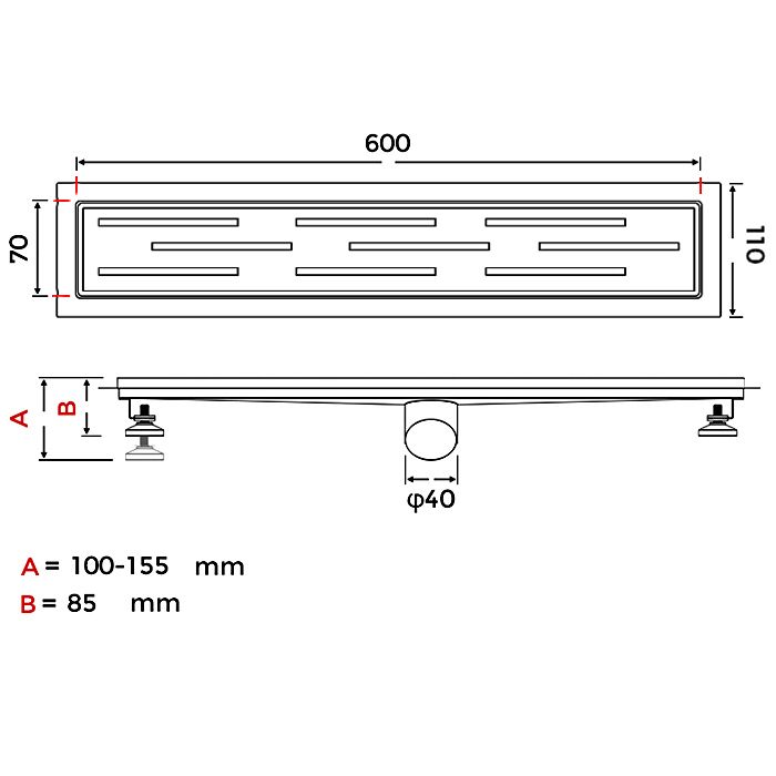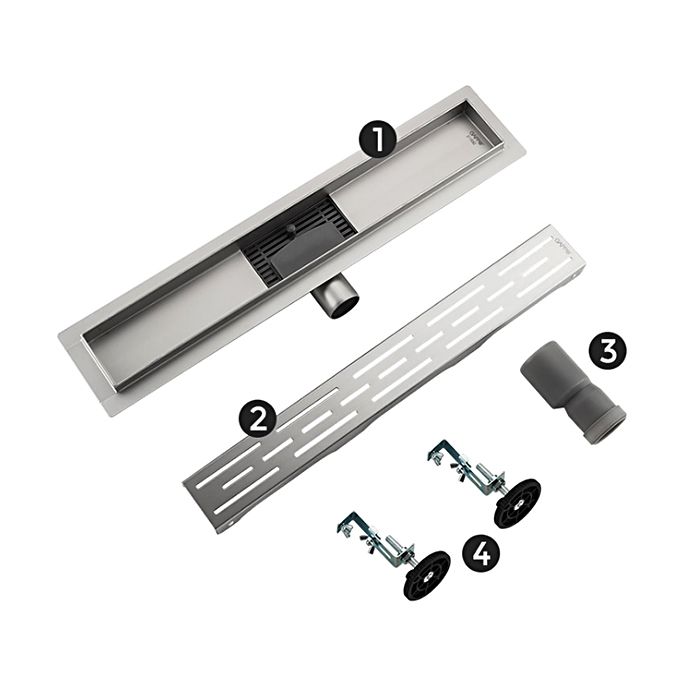 Линейный трап с горизонтальным выпуском Gappo G86007-1, цвет сатин, длина 60 см, изготовлен трап из нержавеющей стали. Минимальная монтажная высота 85 мм, боковой выпуск 40 мм, в комплекте переходник на 50 мм. Защита от запаха: комбинированный гидрозатвор, защита от проникновения запаха и жидкости из канализации.