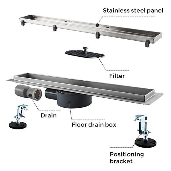 Душевой трап с боковым поворотным выпуском Gappo G86007-4, длина 60 см, цвет сатин, изготовлен трап из нержавеющей стали. Минимальная монтажная высота 85 мм, поворотный боковой выпуск 40 мм, в комплекте переходник на 50 мм. Защита от запаха: комбинированный гидрозатвор, защита от проникновения запаха и жидкости из канализации.