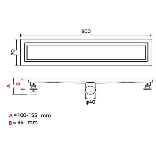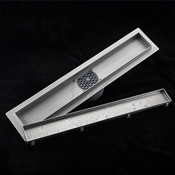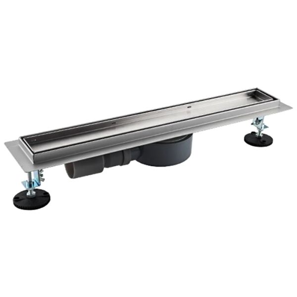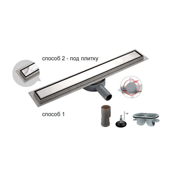 Душевой трап с поворотным выпуском Gappo G88007-4, длина 80 см, цвет сатин, изготовлен трап из нержавеющей стали. Минимальная монтажная высота 85 мм, поворотный боковой выпуск 40 мм, в комплекте переходник на 50 мм. Защита от запаха: комбинированный гидрозатвор, защита от проникновения запаха и жидкости из канализации.