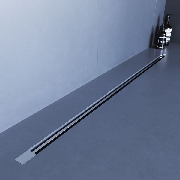 Принимающей декоративный жёлоб маскирует сливное устройство, образует щель, куда сливается вся вода из душевого пространства. Для того чтобы вода эффективно отводилась в трап, на этапе монтажа необходимо обеспечить уклон облицовочной плитки в сторону принимающего жёлоба.Для доступа к технической части устройства с целью очистки необходимо извлечь среднюю часть жёлоба вместе с боковыми декоративными заглушками.Лоток выполнен из нержавеющей стали толщиной 2 мм, собирает стекающую воду и за счёт технического уклона отводит её в сетку-фильтр, которая задерживает волосы и мелкий мусор.Далее вода проходит в сифон с комбинированным затвором, Первая вода сталкивается с сухим затвором, который изготовлен из высокопрочного ABS-пластика. Затвор выполнен в виде крышки с силиконовой прокладкой, крышка открывается под давлением воды и плотно притягивается при отсутствии воды за счёт пружинного механизма, обеспечивая 100% защиту от проникновения неприятных запахов в ванную комнату из канализации.После вода проходит через сифон с гидрозатвором и сливается в канализацию.Сифон с гидрозатвором присоединяется к нижней части лотка трапа и имеет боковой отвод с поворотом на 360 градусов, что позволяет подключить канализационный сток с любой стороны.
