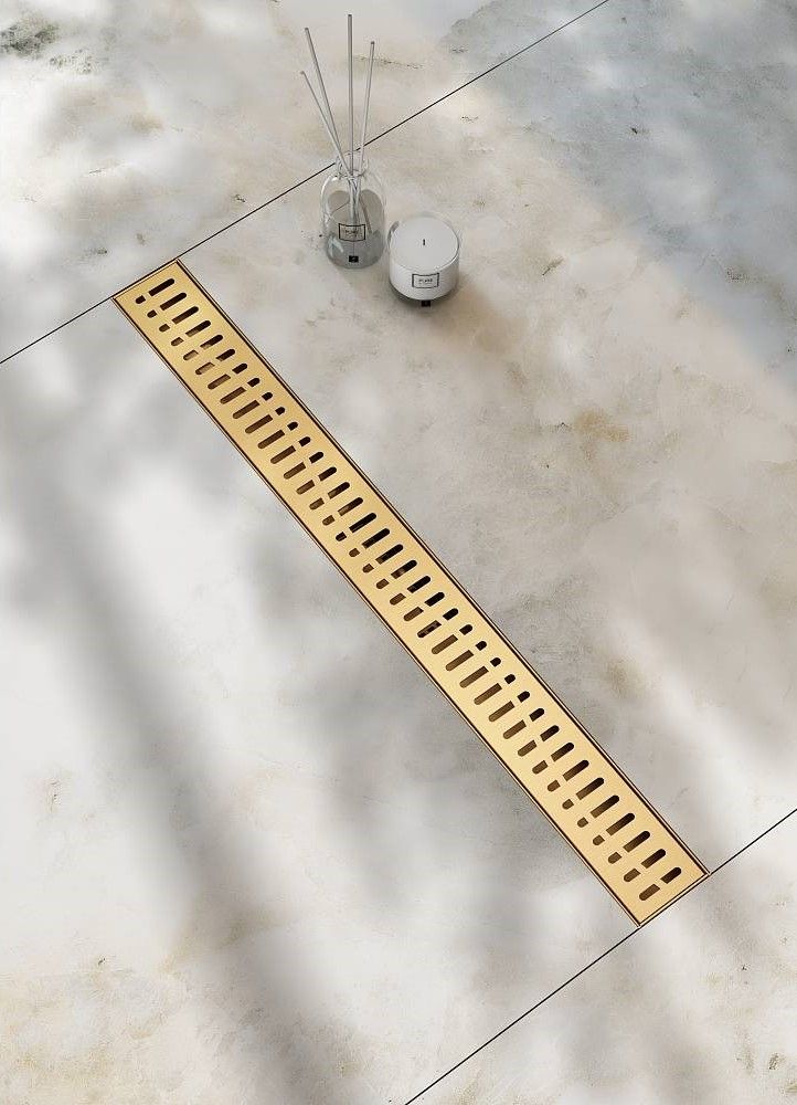 Трап изготовлен из высококачественной нержавеющей стали, в коллекции цвета трапа представлены в нескольких вариантах - черный матовый, сатиновый, золотой, графит. Линейный трап под кладку плитки для душа предназначен для отвода воды с пола или поддона под душем. Широкий диапазон регулировки по высоте позволяет устанавливать трап в новых ванных комнатах. Индивидуально регулируемые ножки обеспечивают беспроблемную установку, даже в тех случаях, когда Вы сталкиваетесь со значительными неровностями в различных частях монтажной поверхности. Трап обеспечивает свободный слив воды в канализационную систему, также собирая мусор, не давая ему засорять сливные каналы. Принцип работы сухого затвора: легкий поплавок диаметром больше сливного отверстия опускается и закрывает трубу в случае высыхания воды. В рабочем положении вода поднимает и удерживает поплавок на одном уровне и система работает, как один из вариантов гидрозатвора. Если трап не используется, то вода из затвора испаряется, а поплавок закрывает сливное отверстие. Диаметр сливной трубы: 40 мм. Максимальная высота монтажа: 155 мм. Минимальная высота монтажа: 100 мм. Выпуск: горизонтальный. Материал корпуса: нержавеющая сталь. Защита от запаха: сухой+гидрозатвор