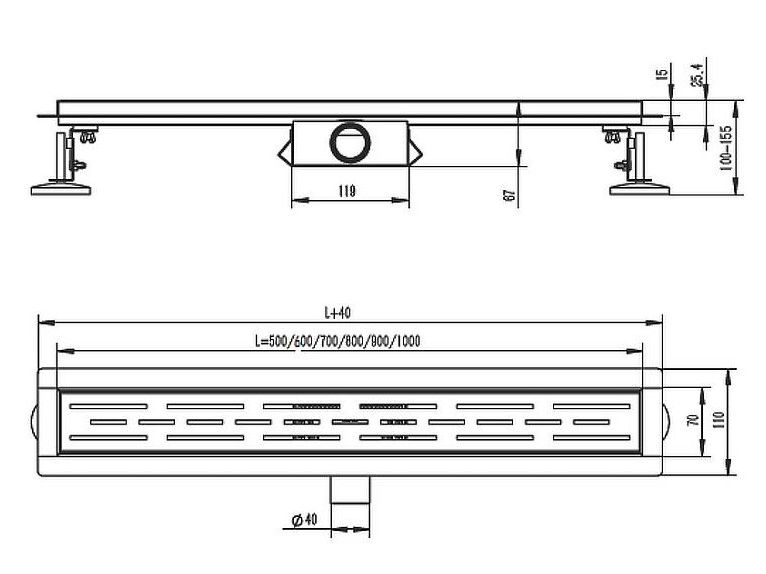 Трап изготовлен из высококачественной нержавеющей стали, в коллекции цвета трапа представлены в нескольких вариантах - графит и сатиновый. Линейный трап под кладку плитки для душа предназначен для отвода воды с пола или поддона под душем. Широкий диапазон регулировки по высоте позволяет устанавливать трап в новых ванных комнатах. Индивидуально регулируемые ножки обеспечивают беспроблемную установку, даже в тех случаях, когда Вы сталкиваетесь со значительными неровностями в различных частях монтажной поверхности. Трап обеспечивает свободный слив воды в канализационную систему, также собирая мусор, не давая ему засорять сливные каналы. Принцип работы сухого затвора: легкий поплавок диаметром больше сливного отверстия опускается и закрывает трубу в случае высыхания воды. В рабочем положении вода поднимает и удерживает поплавок на одном уровне и система работает, как один из вариантов гидрозатвора. Если трап не используется, то вода из затвора испаряется, а поплавок закрывает сливное отверстие. Выпуск: горизонтальный. Материал корпуса: нержавеющая сталь. Защита от запаха: сухой+гидрозатвор, пропускная способность душевого комплекта 30 лит/мин.