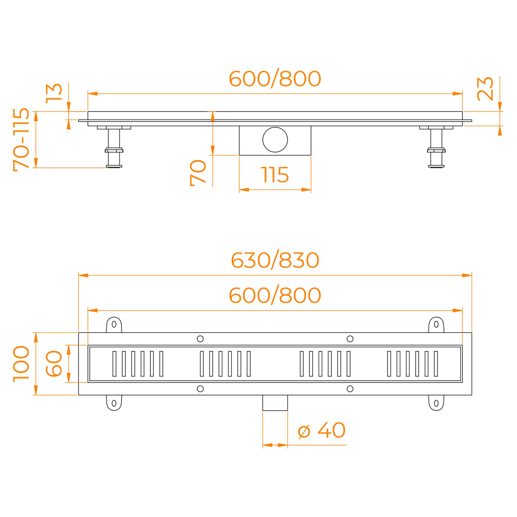• Модель оснащена двухсторонней крышкой - решёткой из нержавеющей стали AIS 304, позволяющей вкладывать плитку для создания эффекта невидимости.