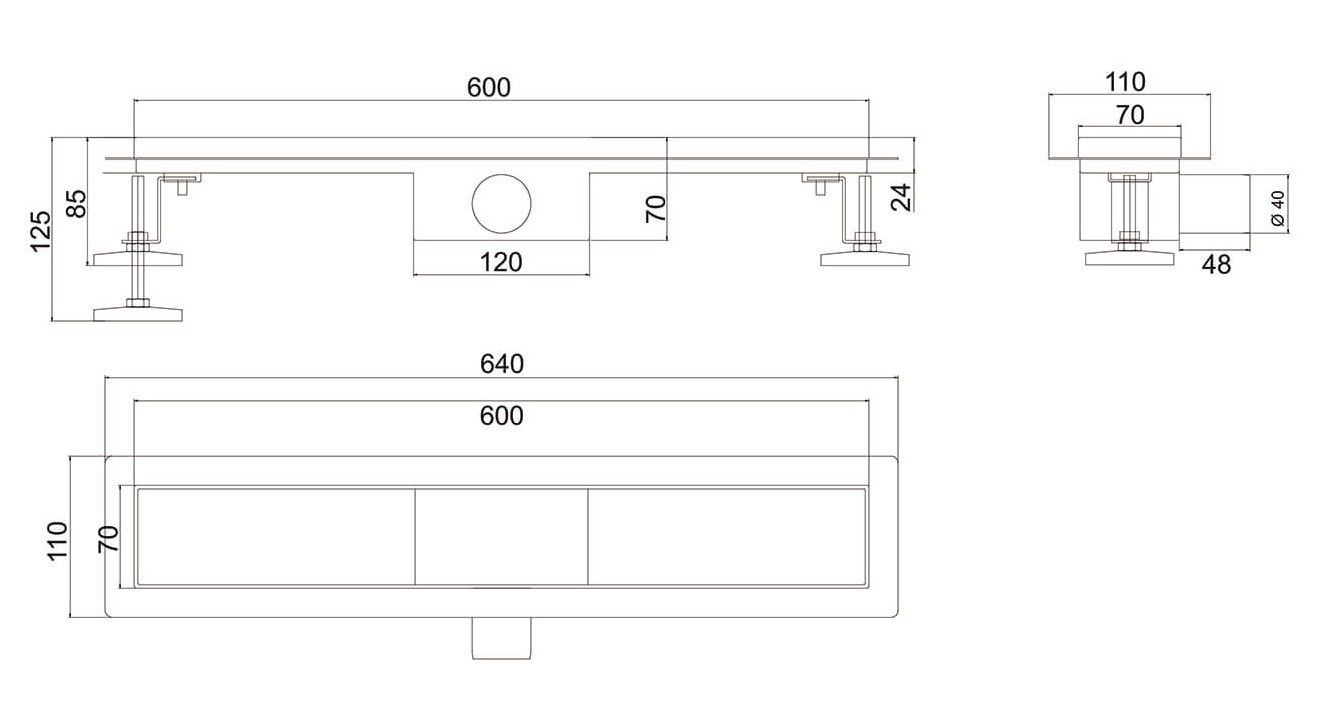 Диаметр сливого отверстия: 40 мм (в комплекте переходник на 50 мм).