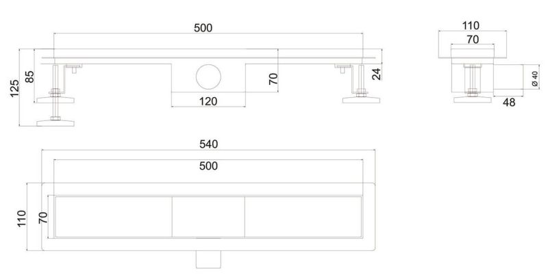 Душевой лоток РМС ТЛ-03-50х7 50см нержавеющая сталь купить