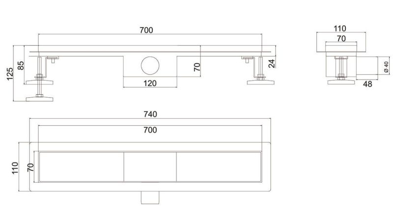 Душевой лоток РМС ТЛ-03-70х7 70см нержавеющая сталь купить