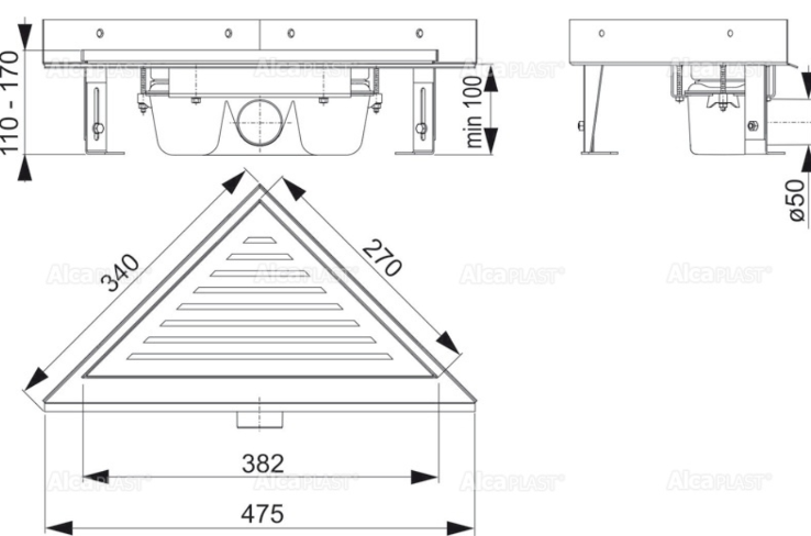 Душевой лоток угловой AlcaPlast с порогами для перфорированной решетки ARZ1 купить