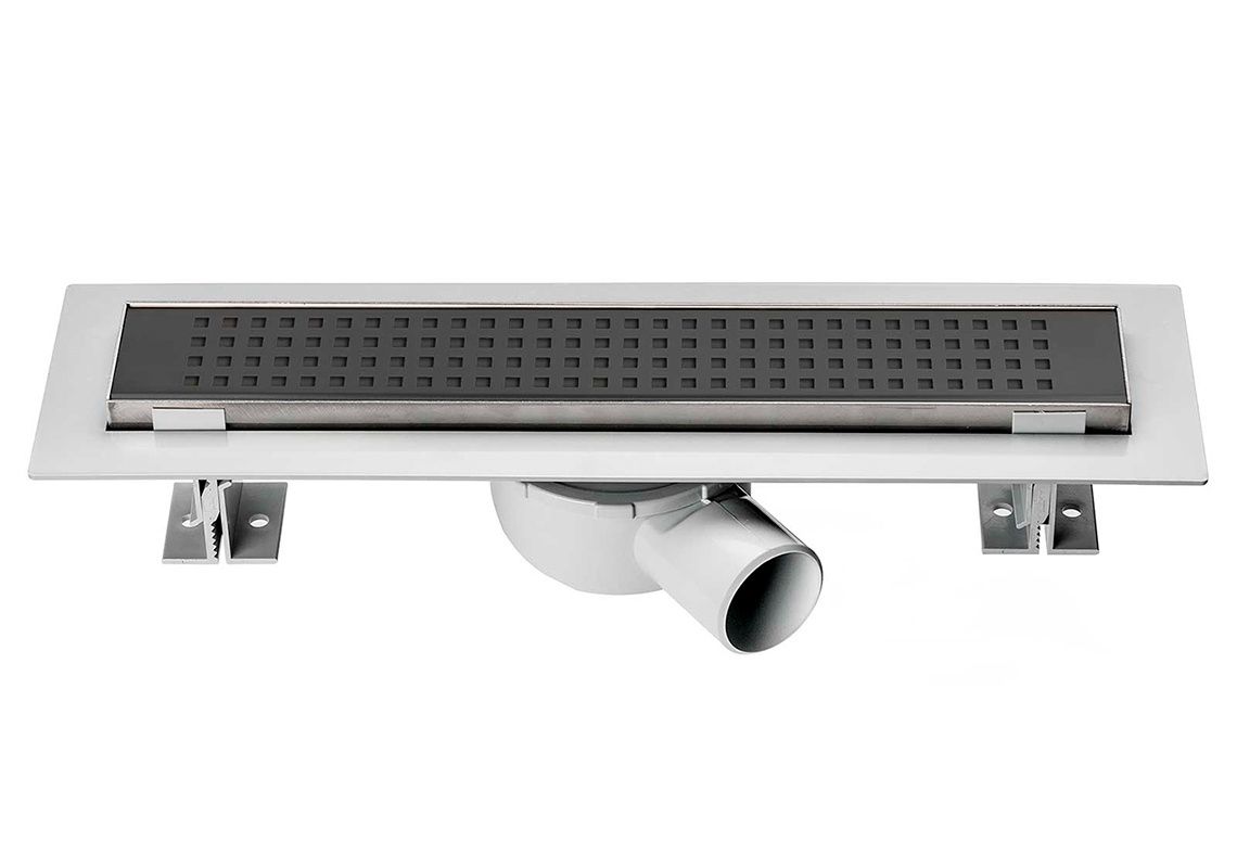 Комплектация: поворотный сифон 360 градусов из ABS-пластика, водонепроницаемые уплотнительные кольца, дренажный канал из ABS-пластика, противозапаховый затвор, водонепроницаемая мембрана, рамка и решетка из нержавеющей стали 2 мм, комплект регулируемых по высоте опор, пластиковый сервисный ключ, регулировочный винт из нержавеющей стали, регулировка соединения.