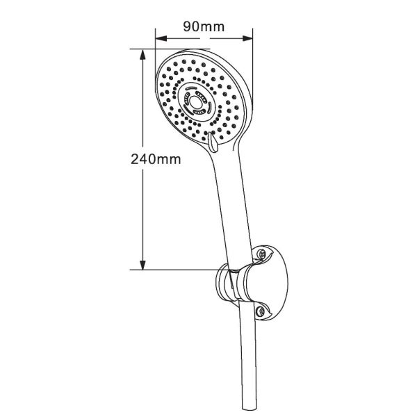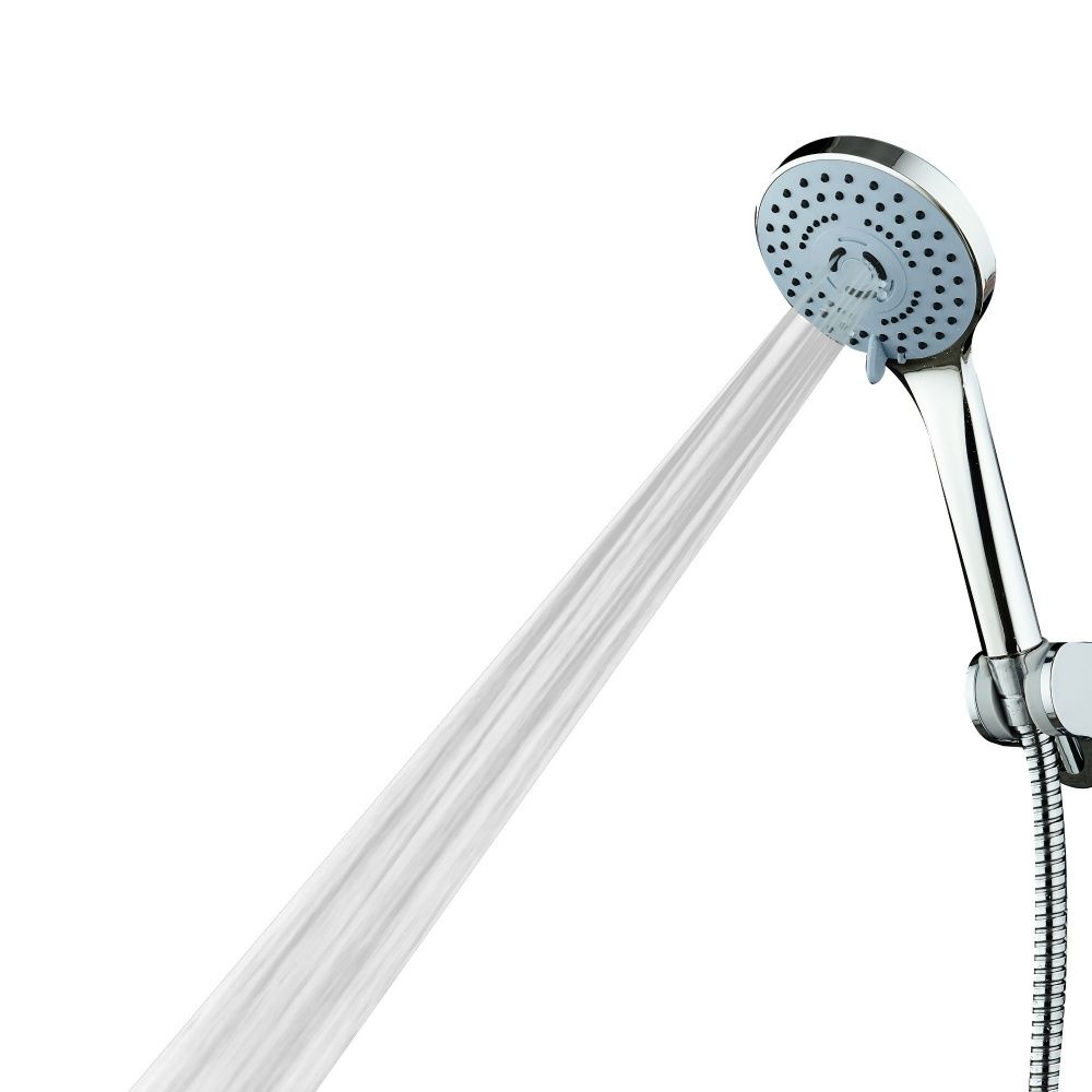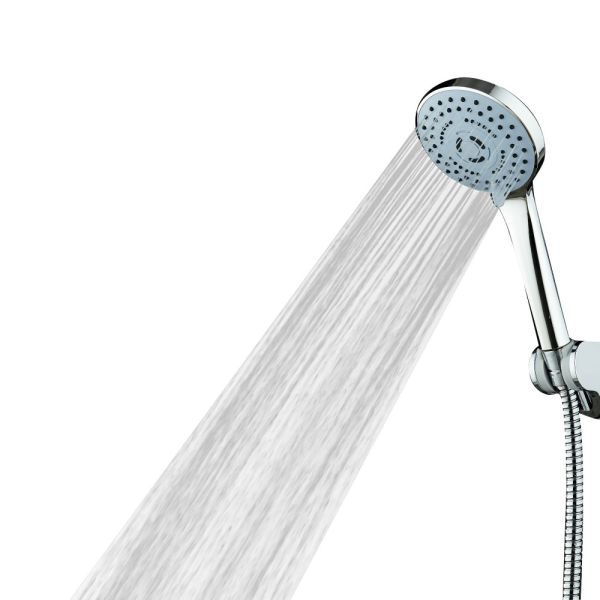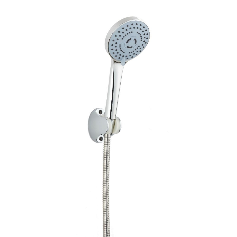 Душевой набор в цвете глянцевый хром: ручной душ d90 мм (3 режима) на гибком полутораметровом шланге (в металлической оплетке) с защитой от перекручивания. Держатель ручного душа с регулировкой угла наклона. Форсунки ручного душа с функцией легкого очищения от известкового налета.
