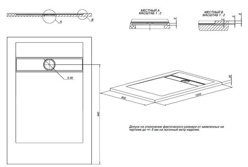 Размеры (ШхВхД): 1200х30х800 мм.