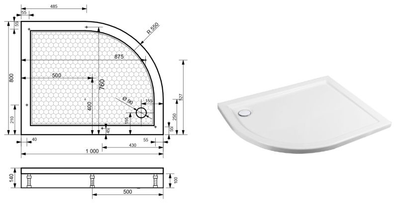 Для малогабаритных санузлов мы разработали угловые душевые поддоны. Поддон Омега имеет ассиметричную форму и невысокие бортики. Литьевой мрамор обладает изоляционными свойствами, шум воды не будет мешать вашему повседневному использованию.