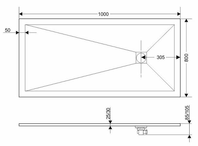 - Размеры поддона: прямоугольный 100 x 80 толщина 2,5 см