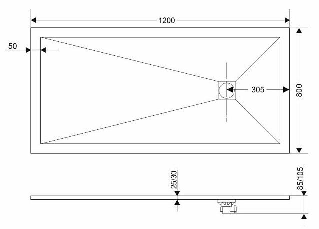 - Размеры поддона: прямоугольный 120 x 80 толщина 2,5 см