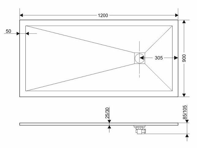 - Размеры поддона: прямоугольный 120 x 90 толщина 2,5 см