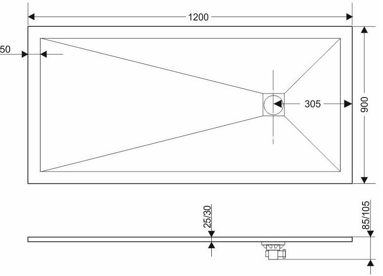 - Размеры поддона: прямоугольный 120 x 90 толщина 2,5 см