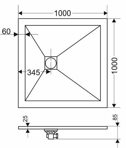 - Размеры поддона: квадратный 90 x 90 толщина 2,5 см