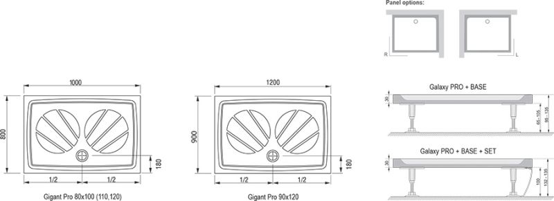 Поддон Gigant Pro подходит для душевых уголков SRV2-S+SRV2-S, ASDP3+APSS, SDZ3+PSS, SDOP+PSS, BLRV2K+BLRV2K, BLDP2+BLPS, BLDP4+BLPS, NRDP2+RPS, NRDPR4 + RPS, PDOP2+PPS, CRV1+CRV1, CRV2+CRV2, CRV2+CPS, SMSD2+SMPS, BSDPS и ванных комнат с душевыми дверьми ASDP3, SDZ3, SDOP, BLDP2, BLDP4, PDOP1, PDOP2, NRDP2, NRDP4, CSD1, CSD2, CSDL2, SMSD2, BSD2, BSD3.