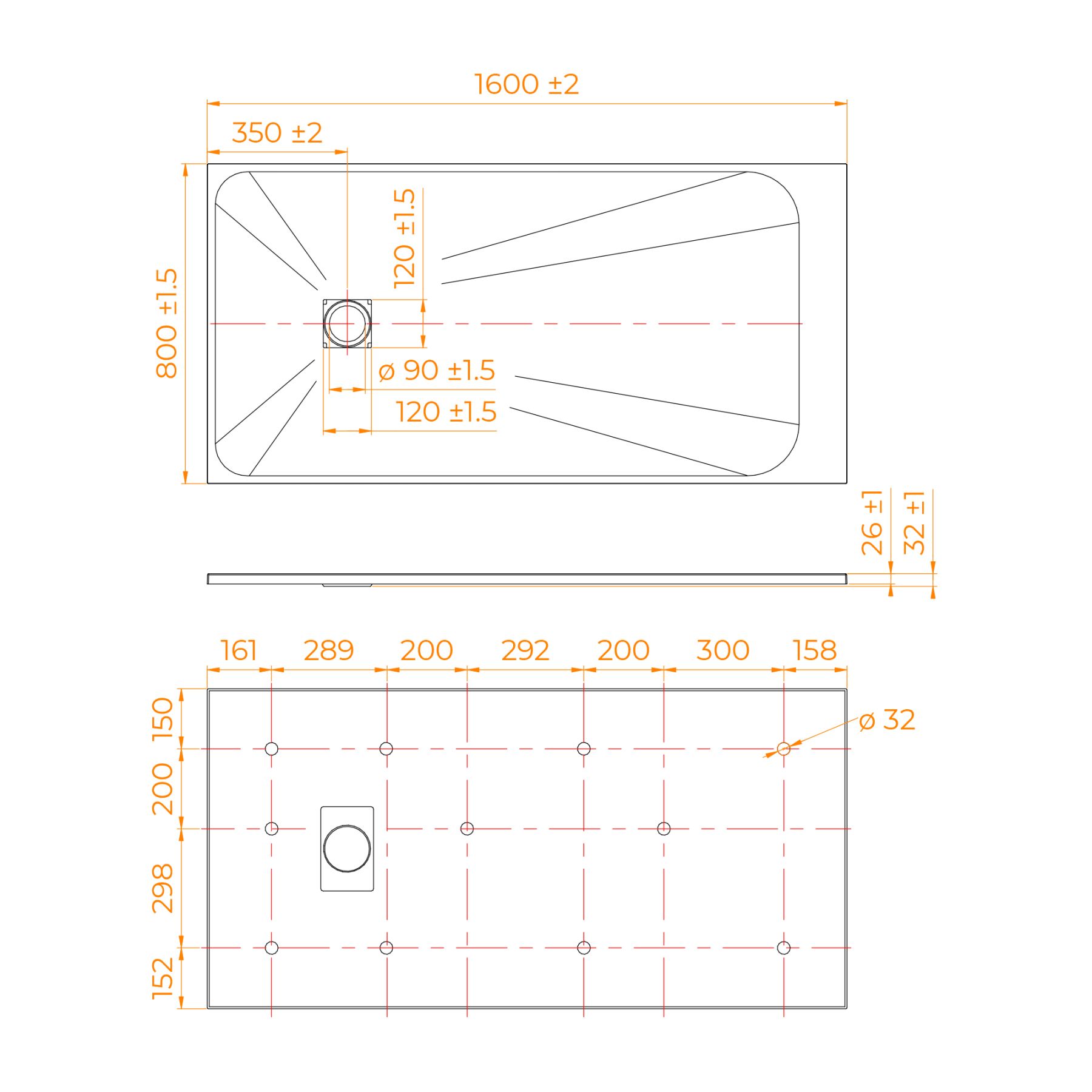 - Общая высота поддона: 26 мм.;
