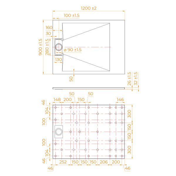 - Общая высота поддона: 26 мм.;