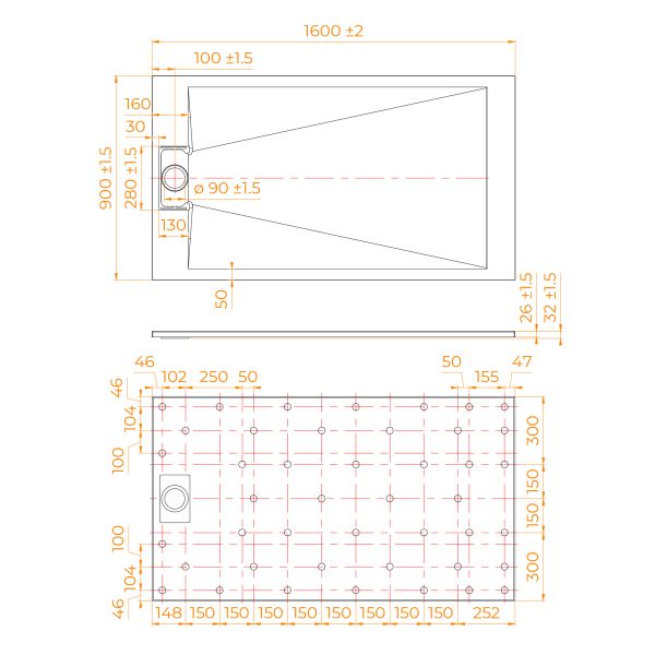 Материал исполнения SMC - стеклопластик или стеклокомпозит.Поддоны производятся на сложнейшем оборудовании под воздействием большого давления и высокой температуры.В результате получаются изделия по твердости поверхности не уступающие закалённому стеклу, а волокнистая структура материала и специальная конструкция поддонов позволяет выдерживать значительные механические нагрузки.Низкая теплопроводность материала, такая же как у дерева, позволяет поддерживать комфортную температуру поверхности поддона в процессе использования.