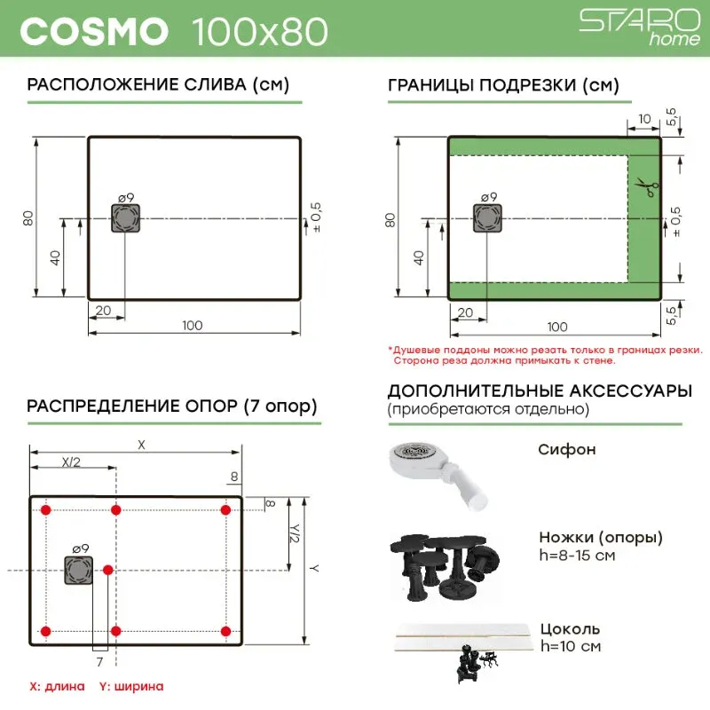 Душевой поддон Starohome Cosmo 47112141 100х80 см