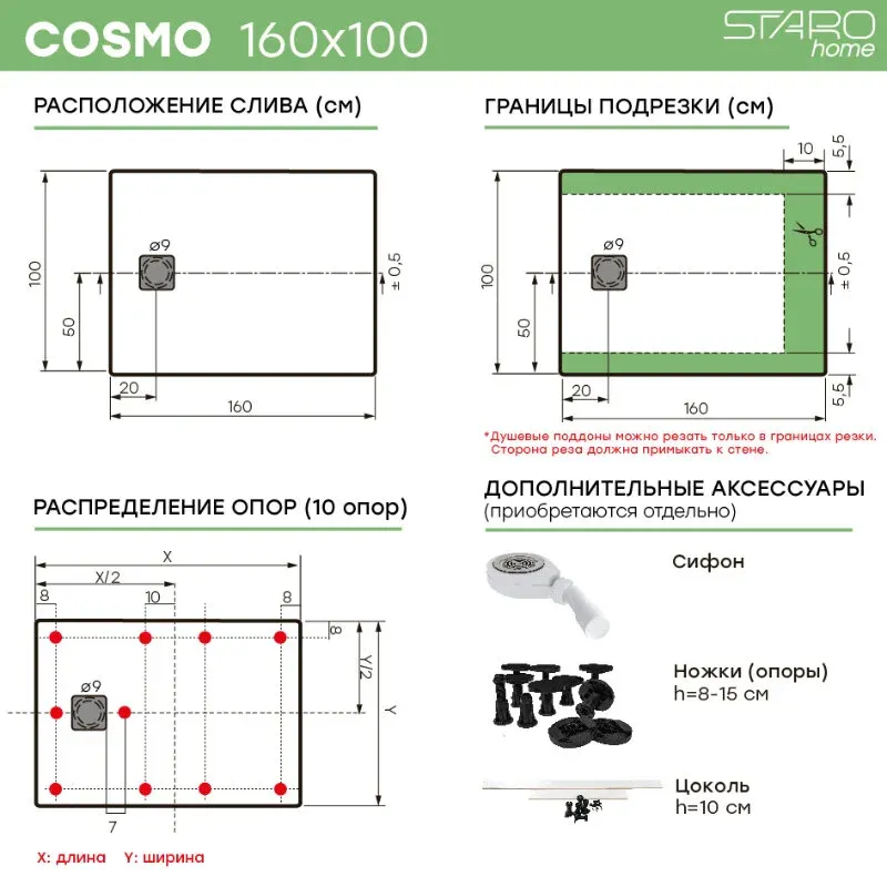 Душевой поддон Starohome Cosmo 61162824 160х100 см