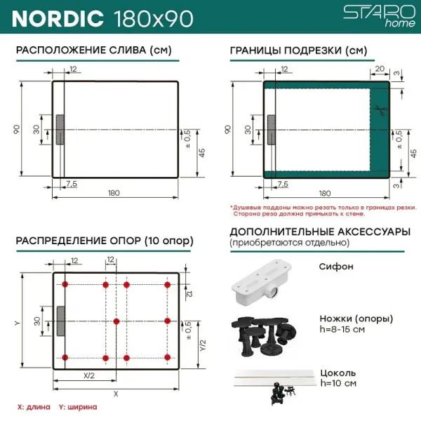 Душевой поддон Starohome NORDIC 72777688 180х90 см Подробнее
