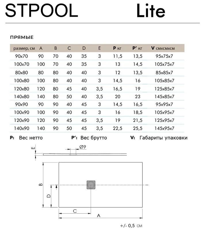 Душевой поддон Stpool Lite 120х90 WHITE MATT, 120 x 90 см, искусственный камень, прямоугольный, цвет белый матовыйДушевой поддон Lite изготовлен из композиционного материала Sanylite® и представляет собой смесь полиэфирной смолы, стекловолокна, наполнителя и верхнего гелевого слоя Gel Coat.Покрытие Gel Coat противоскользящее,термостойкое, стойкое к окрашиванию и УФ-излучению.Душевые поддоны Lite производятся на современном европейском оборудовании для европейского рынка. Сквозной контроль качества на всех этапах производства.