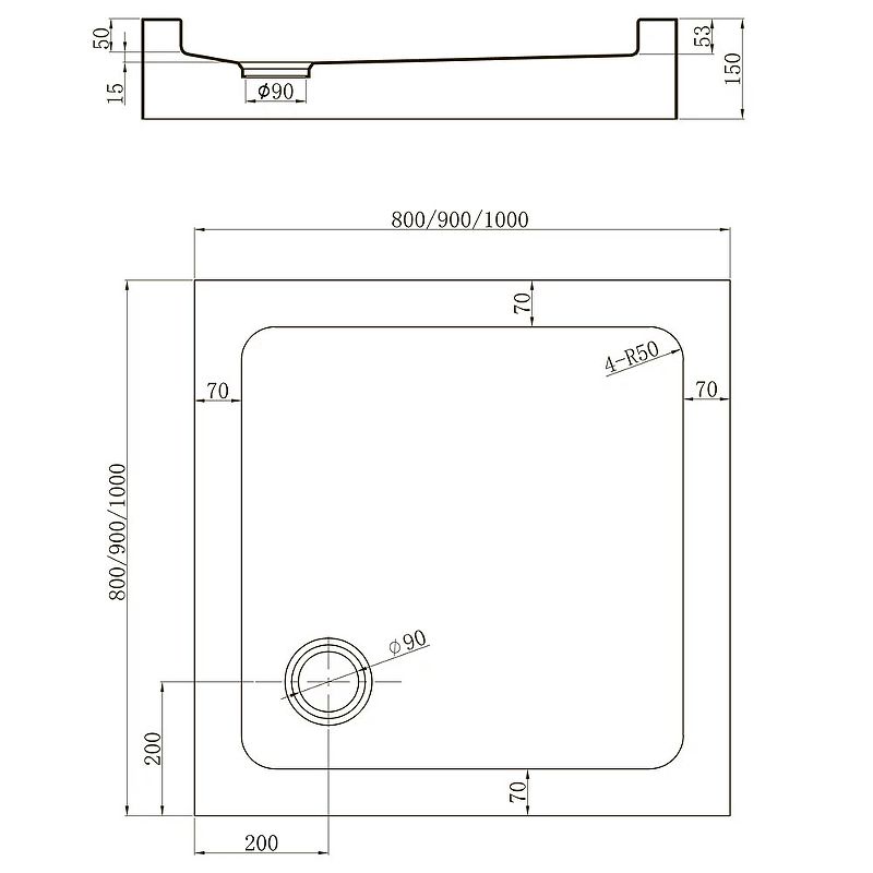 Душевой поддон квадратный Veconi Tezeo Acrylic TZ-52, 900x900x150, акрил, белый