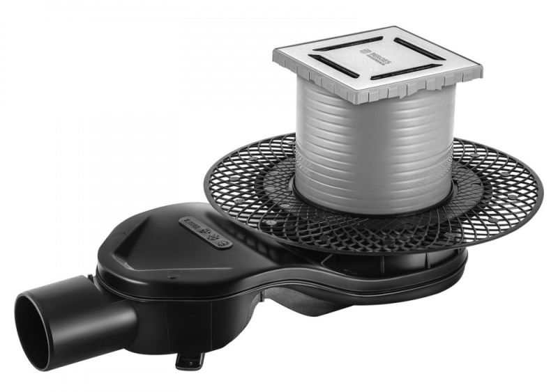Решетка толщина 3мм, нержавеющая сталь AISI 304Горловина трапа, пластикФланец трапа с переходником, РРМонтажная заглушка, PPСамопромывной S-образный сифон PPГоризонтальный выпуск D50 H60, пропускная способность 42л/мин, монтаж 360°Монтажный ключ, пластик