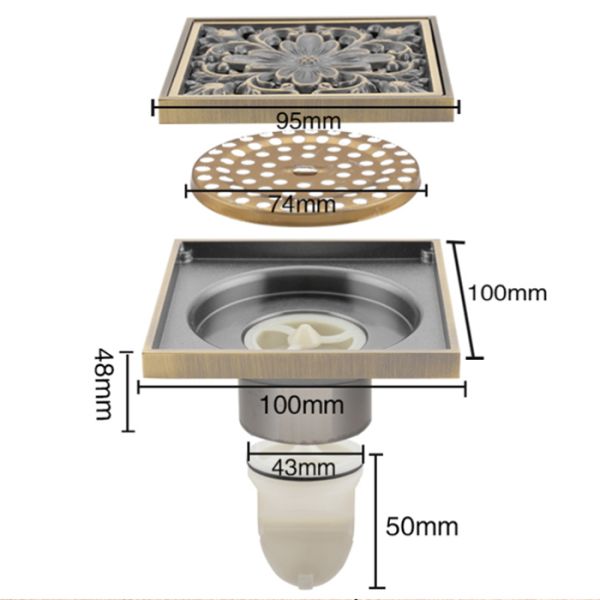Трап для душа вертикальный Gappo G81003-4, размер 10 * 10 см, цвет бронза, изготовлен трап из нержавеющей стали.