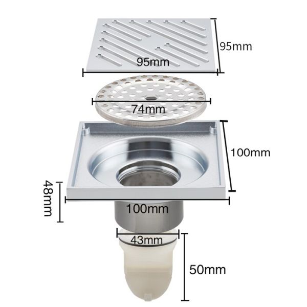 Душевой трап вертикальный Gappo G81050, размер 10 * 10 см, цвет хром, изготовлен трап из нержавеющей стали.